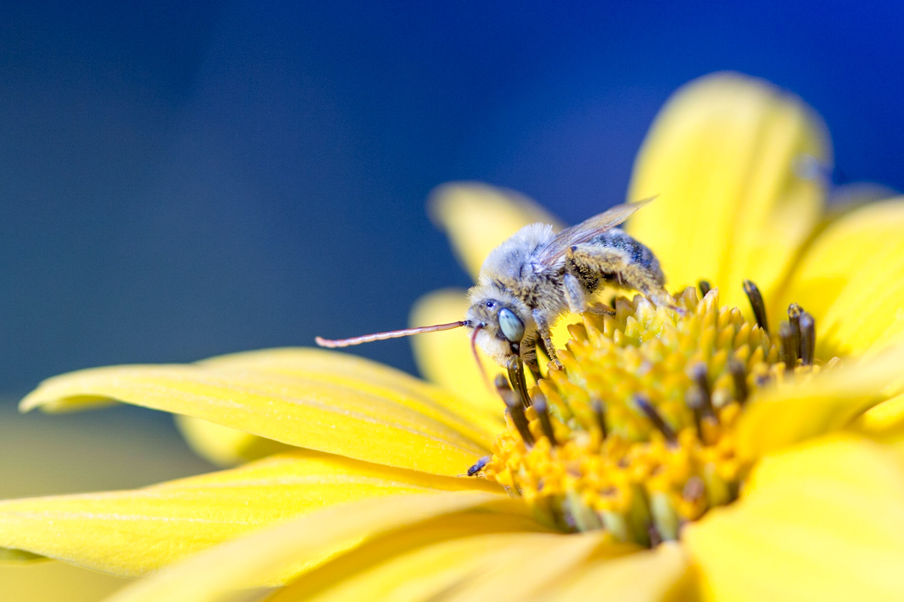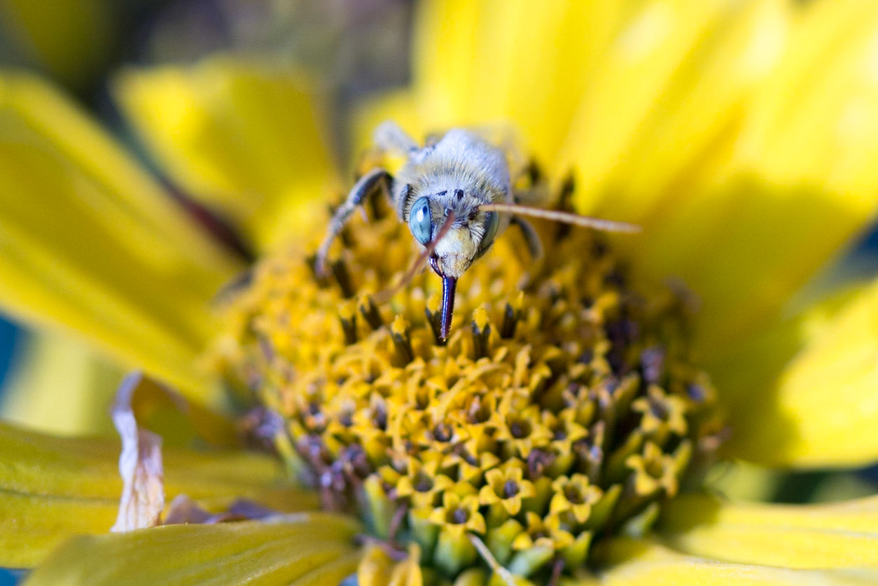 Anthophila and Desert-marigold (Baileya multiradiata)